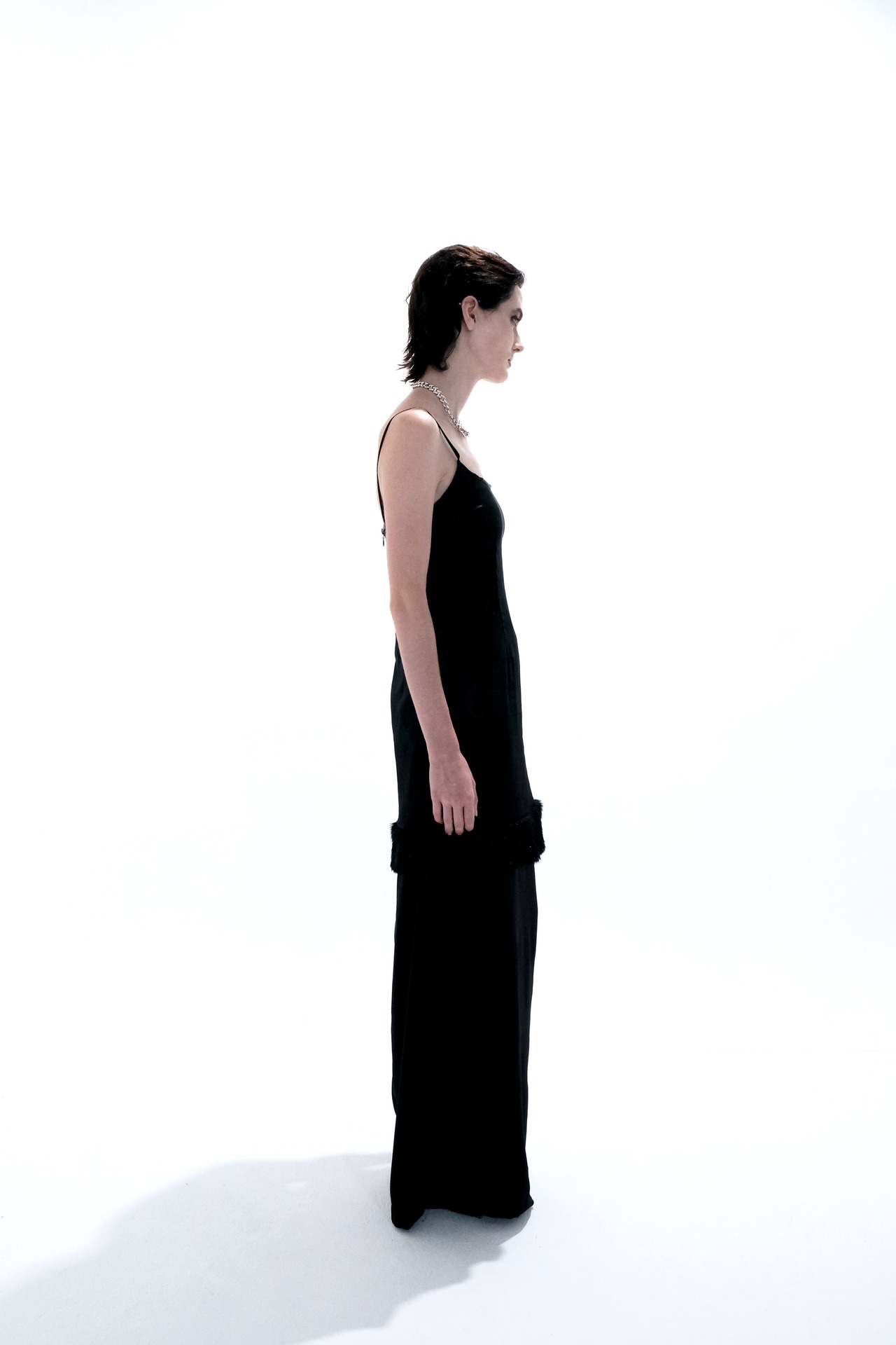ドレープしたサテンからのぞく骨盤がセンシュアルな印象を与えます。